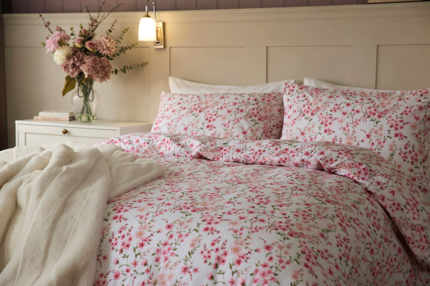 Its delicate floral motif, scattered across a warm white base, introduces a soft, uplifting elegance that brightens the room without overwhelming it. The subtle pink tones appeal to a wide range of tastes, making Nova a confident, dependable choice for customers who want style that endures. The brushed cotton finish enhances everyday comfort, helping you fall asleep faster, stay warm for longer, and enjoy a noticeably more restorative night.