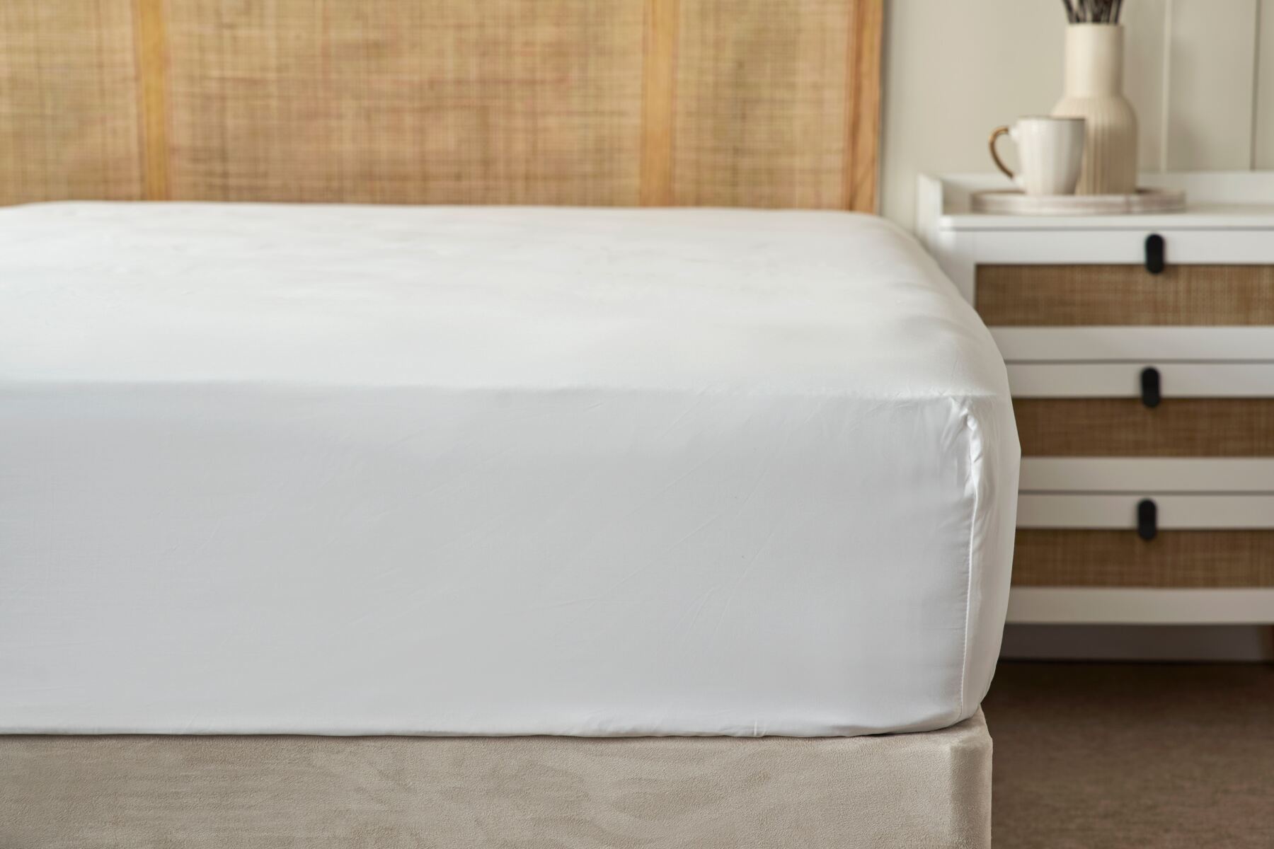 Available in a range of sizes and colours, this fitted sheet has a full depth of 38cm (15”), designed to fit mattresses up to 30cm (12”) deep. The extra depth ensures a perfect, no-pull-out fit. We recommend fitted sheets to sit 8cm (2”-3”) deeper than the total thickness of your mattress (+ any topper), with any extra fabric held tidily underneath the mattress.