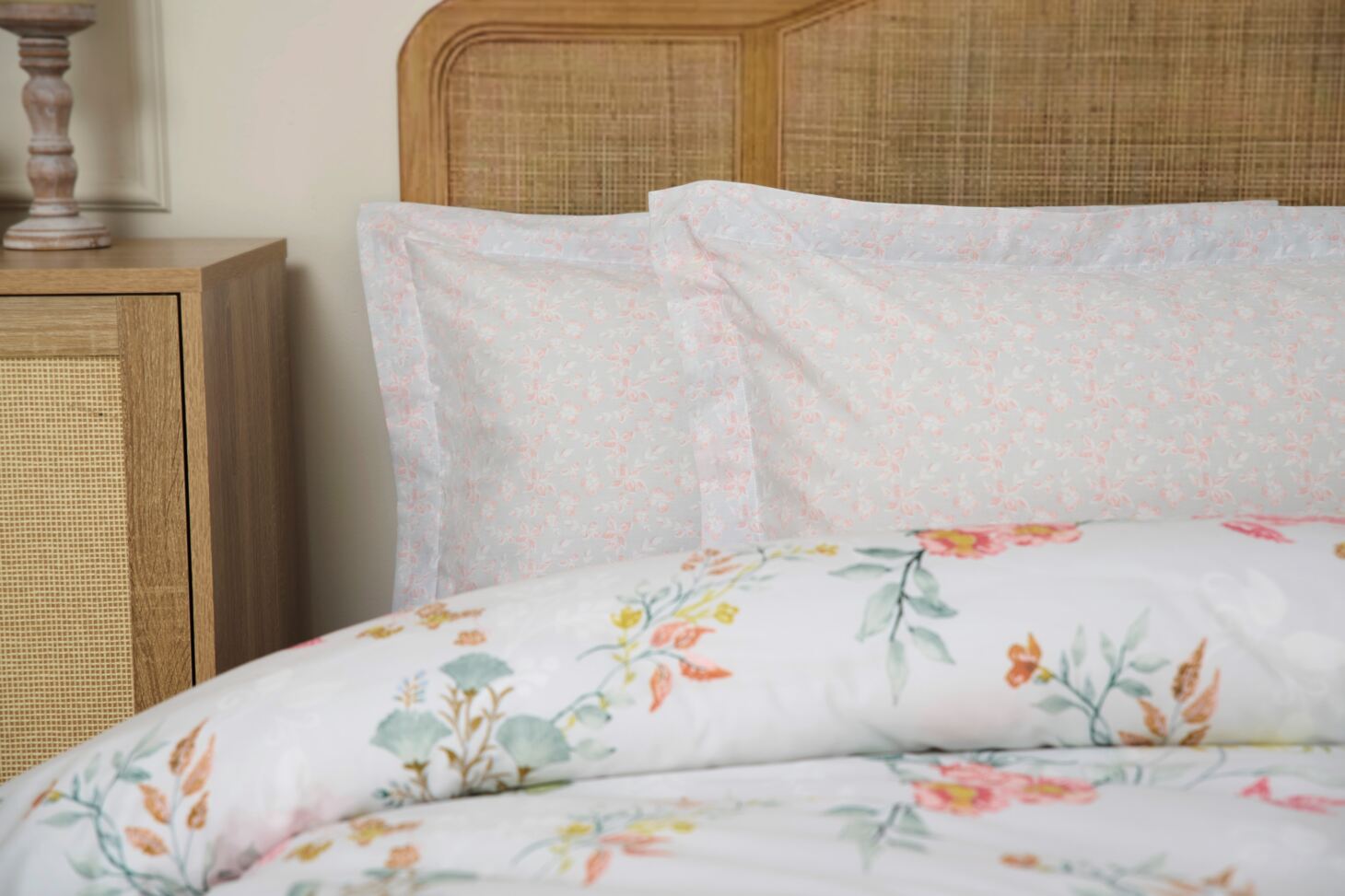Add the finishing touch to your bed with the Raeya Collection Oxford Pillowcase Pair. Crafted from a soft and durable 80% cotton, 20% polyester blend with a 150 thread count, these pillowcases feature Raeya’s hand-drawn floral pattern in painterly shades of blush pink, butter yellow and sage green on a light grey background.